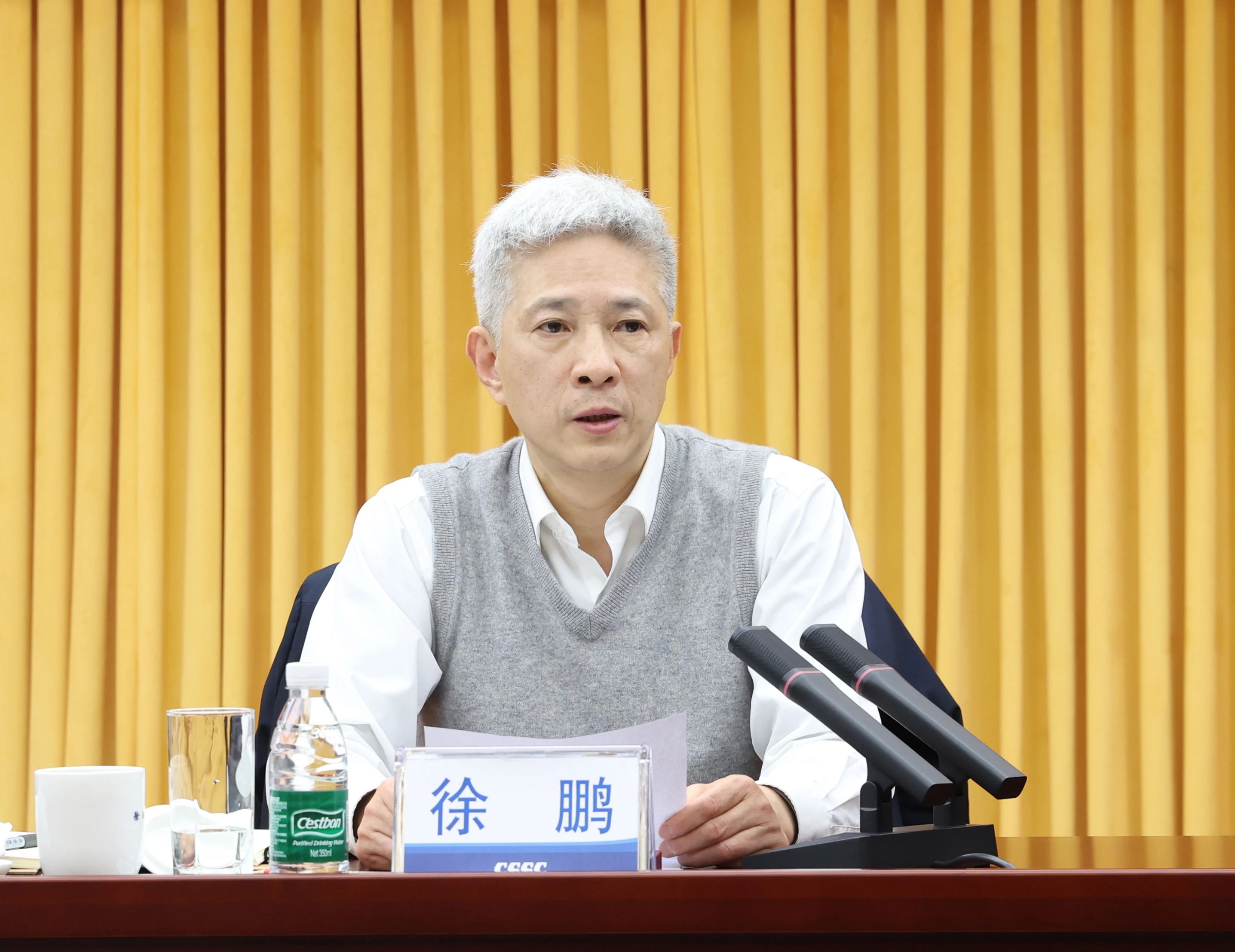 3月14日,中國船舶集團有限公司召開黨組與二級管理單位黨委理論學習中心組聯學擴大會,傳達學習全國兩會精神。中船集團黨組書記、董事長徐鵬主持會議并講話,集團公司黨組理論學習中心組成員參會。