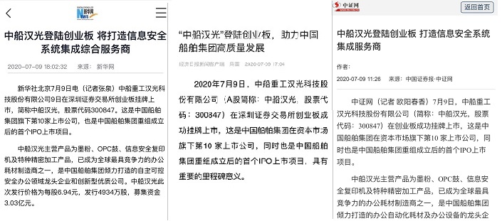 中船漢光成功上市在業(yè)內(nèi)引起強烈反響,新華社、經(jīng)濟日報以及中國證券報等主流媒體紛紛進行了報道。
