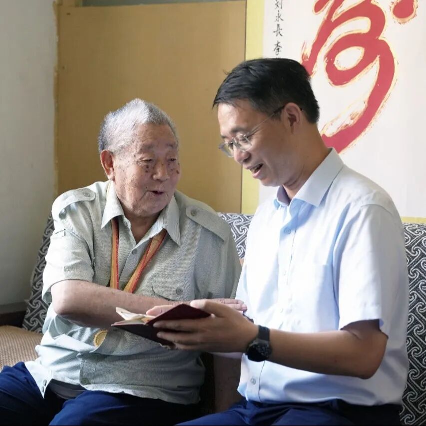 賈海英在焦英杰家中與其促膝交談,悉心詢問他的身體狀況和生活情況,專注聽他講述抗戰時期的崢嶸歲月,頻頻點頭回應并追問細節,衷心地感謝他在抗戰時期作出的巨大犧牲和貢獻,并祝愿他身體健康、福壽綿長;同時,叮囑總部各部門及相關單位要及時關心、了解抗戰老兵的生活和工作情況,使大家真切感受到集團公司黨組的關懷與溫暖。