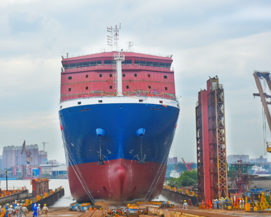 8月7日,中國船舶集團旗下滬東中華為日本“K”LINE航運公司建造的2艘79960立方米液化天然氣(LNG)運輸船項目的首制船正式開建。該型船是全球最大的淺水航道第四代LNG船由滬東中華自主設計建造,是中國首款江海聯(lián)運型LNG船。該型船總長239米,型寬36.6米,采用高效的低速雙燃料柴油機直推系統(tǒng)。