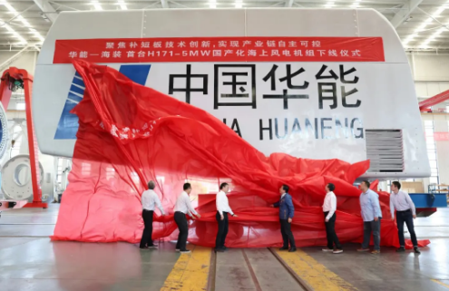 5月22日,中國海裝與中國華能聯合研制的國產化海上風電機組成功下線。該機組: