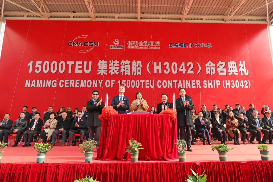 2月28日,中國船舶集團有限公司旗下滬東中華造船(集團)有限公司聯(lián)合中國船舶工業(yè)貿(mào)易有限公司為法國達飛海運集團建造的15000TEU超大型集裝箱船“達飛·阿多尼斯”號在上海命名。這不僅是為達飛集團量身定制的5艘常規(guī)動力系列箱船中的最后一艘,實現(xiàn)了平均每月命名交付一艘的既定目標,也是繼由該公司建造的5艘全球首創(chuàng)最大、最先進23000TEU雙燃料動力集裝箱船之后,又一款被市場追捧的超大型集裝箱船項目完美收官,進一步鞏固了其全球超大型箱船建造基地的地位。
