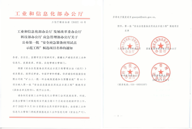 近日,工業和信息化部辦公廳、發展和改革委員會辦公廳、科學技術部辦公廳、應急管理部辦公廳聯合公布首批“安全應急裝備應用試點示范工程”候選項目。