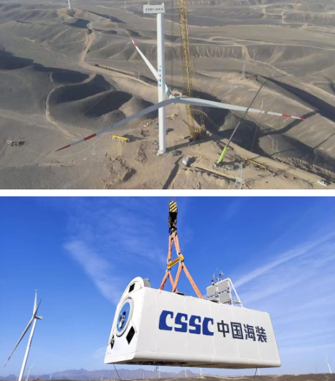 該一體化項(xiàng)目位于全國(guó)有名的“百里風(fēng)區(qū)”——新疆哈密市伊州區(qū)十三間房區(qū)域,項(xiàng)目占地面積約231平方公里,是目前哈密市單體裝機(jī)規(guī)模最大的風(fēng)儲(chǔ)一體化項(xiàng)目。共安裝150臺(tái)中船海裝H176-6.7兆瓦風(fēng)電機(jī)組和中船風(fēng)帆生產(chǎn)的30萬(wàn)千瓦/120萬(wàn)千瓦時(shí)的電化學(xué)儲(chǔ)能裝置。