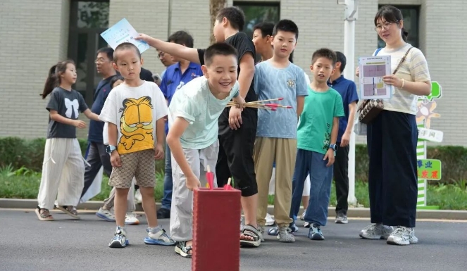 在講解員引導(dǎo)下,家屬們先后走進(jìn)七二五所所部科技展廳與第六研究室,系統(tǒng)了解研究所六十余載發(fā)展歷程、研究領(lǐng)域、前沿技術(shù)攻關(guān)。從國家科技進(jìn)步獎獲獎項目到“大國重器”關(guān)鍵材料突破,家屬們深刻感受到“艱苦創(chuàng)業(yè)、勇攀高峰”的奮斗者文化傳承。在親子活動區(qū),“趣味投壺”“瘋狂九宮格射門”“百步穿楊”“急速投籃”等4項趣味游戲,瞬間點(diǎn)燃了職工與家屬們的參與熱情,大家紛紛組隊,積極投入到游戲中,通過趣味互動,進(jìn)一步加深彼此間的理解與默契,情感也在歡聲笑語中得到了升華。