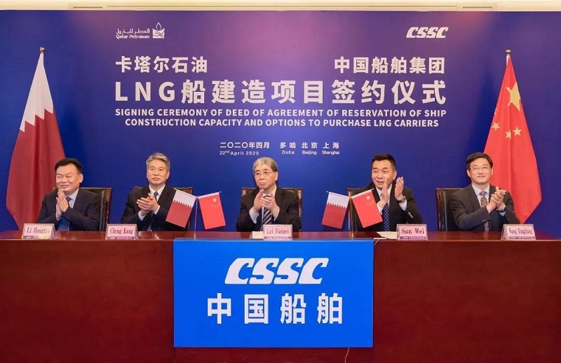 ????4月22日,中國(guó)船舶集團(tuán)與卡塔爾石油公司在中國(guó)北京、上海及卡塔爾多哈三地以“云簽約”方式聯(lián)合簽署“中國(guó)船舶—卡塔爾石油液化天然氣(LNG)船建造項(xiàng)目”協(xié)議,所涉訂單總金額超過(guò)200億元人民幣。這是卡塔爾天然氣項(xiàng)目首批訂單,也是中國(guó)船企迄今承接的金額最大的造船出口訂單。中國(guó)船舶集團(tuán)和卡塔爾石油將強(qiáng)強(qiáng)聯(lián)手,依托各自優(yōu)勢(shì)在能源運(yùn)輸、裝備制造及全球化服務(wù)等領(lǐng)域開展廣泛合作。