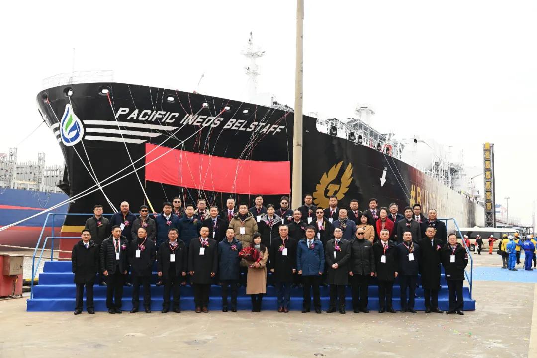 此外,江南造船還有3艘99000立方米VLEC同型船在建,計劃于明年全部交付。“PACIFIC INEOS BELSTAFF”號是江南造船2021年度交付的最后一艘產(chǎn)品,標(biāo)志著江南造船圓滿完成全年12型30艘產(chǎn)品的生產(chǎn)任務(wù)。