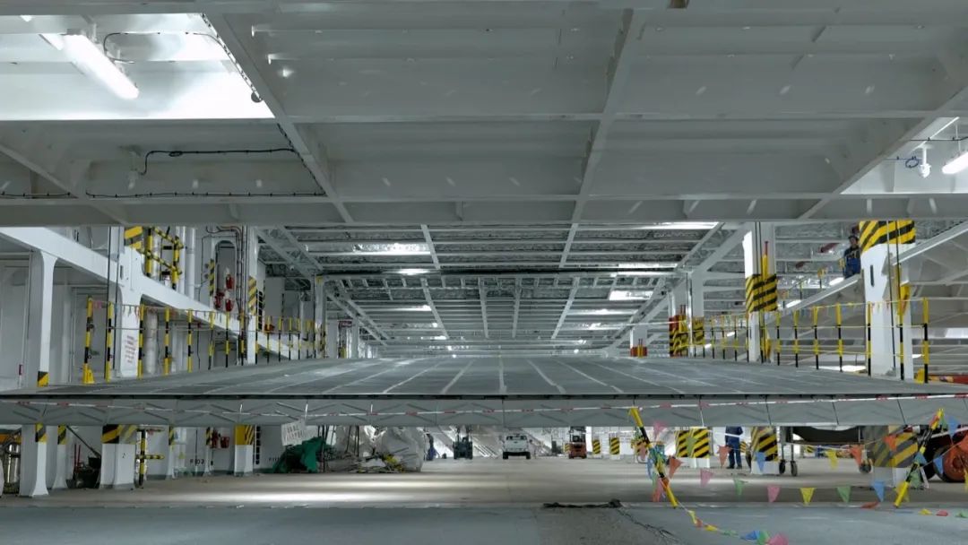 除了“薄”,船上承載車輛的甲板還有一個(gè)特點(diǎn): 可根據(jù)汽車高度調(diào)整層高。 一艘船的滾裝設(shè)備和活動(dòng)甲板多達(dá)100塊,船體搭載過程中任何一個(gè)環(huán)節(jié)出現(xiàn)偏差,都會(huì)導(dǎo)致活動(dòng)甲板無法安裝。而廣船國(guó)際對(duì)船舶生產(chǎn)全過程實(shí)施嚴(yán)格的精度管理,目前已經(jīng)完全攻克相關(guān)技術(shù),真正實(shí)現(xiàn)了船舶工業(yè)體系的進(jìn)階。