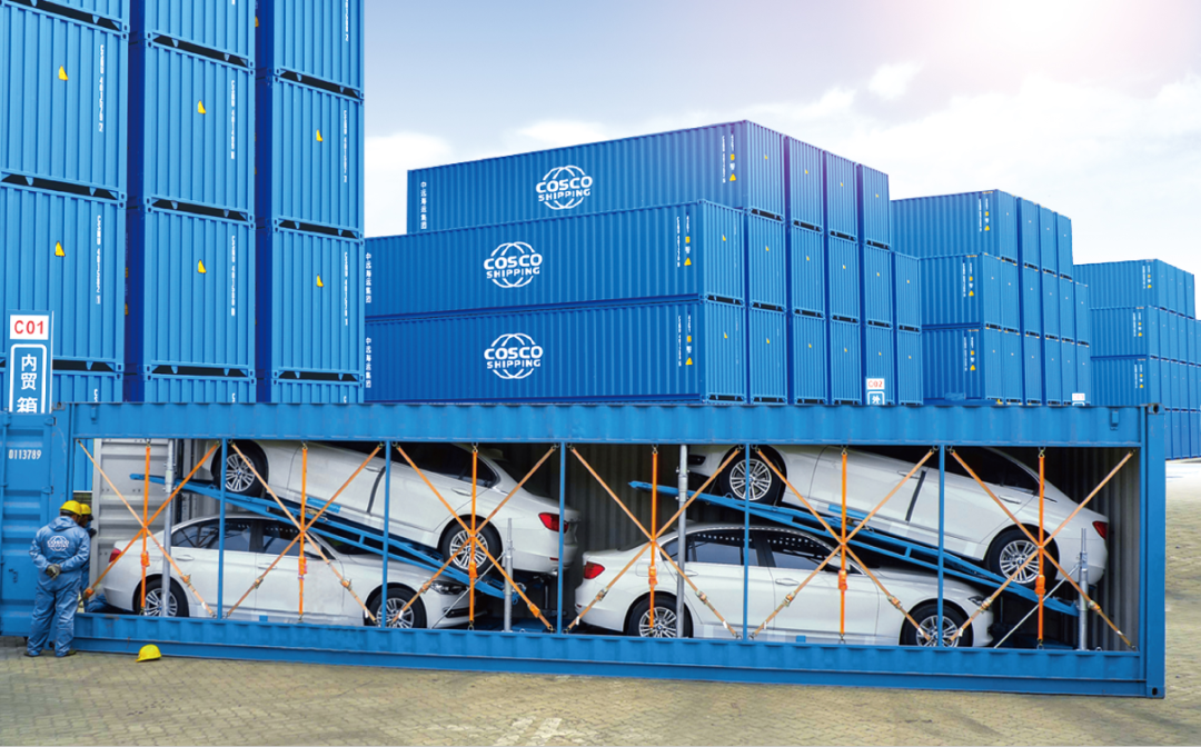 花式運(yùn)輸?shù)牡谝徽惺羌b箱整車運(yùn)輸。 通過集裝箱整車支架技術(shù),可自由選擇將2—4輛汽車裝入一個(gè)集裝箱內(nèi), 最大程度上節(jié)省平鋪擺放占用面積,可堆疊的三維布局如同為汽車打造了一幢安如磐石的“海上公寓”。